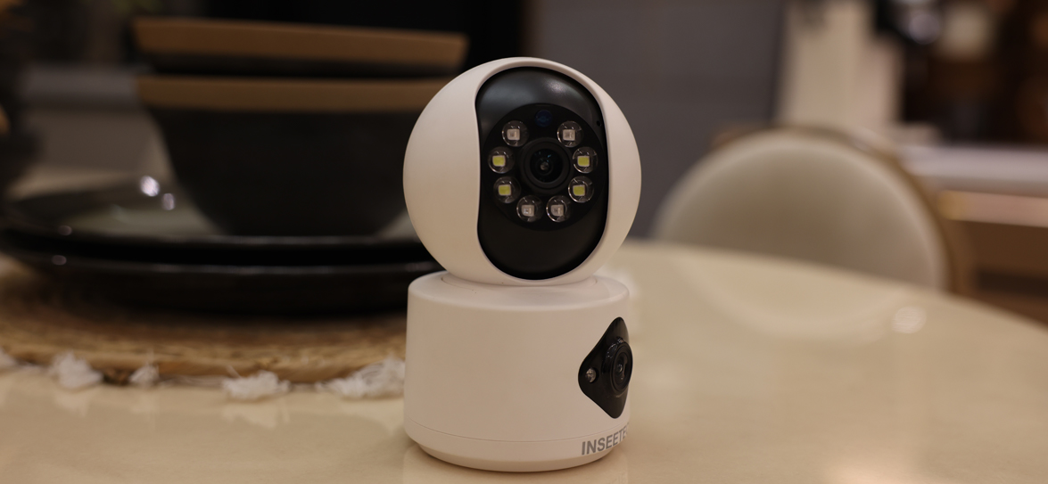 If you're looking for comprehensive coverage and smart functionality, Inseetech's dual-lens security camera stands out as an exceptional choice. The top camera offers 350° pan and 90° tilt capabilities, ensuring that no corner of your room is left unmonitored. This camera is perfect for large spaces where you want complete visual coverage.