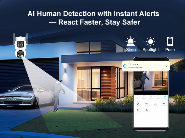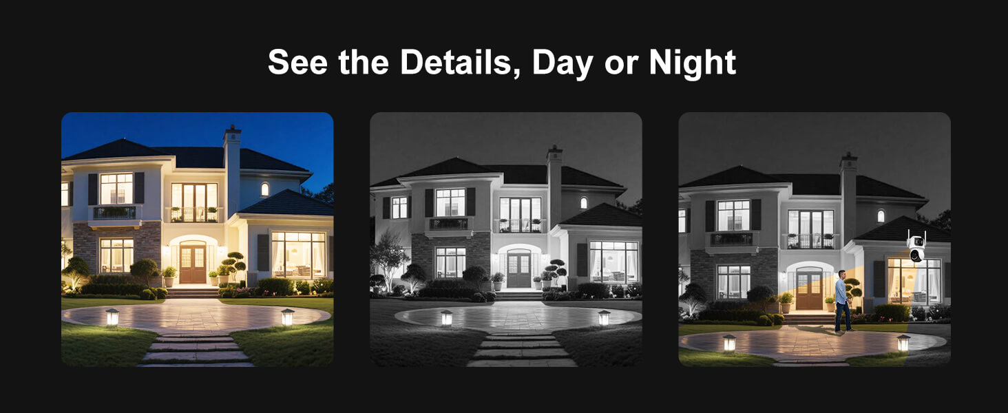 Full-Color Night Vision: Often powered by large-aperture lenses and advanced image sensors, this mode aims to deliver color video even in very low ambient light (like from a distant streetlamp) without the need for a visible white light, preserving the natural look of the scene 24 hours a day. Continuous recording, auto-tracking, and dual-lens clarity function in all these modes.