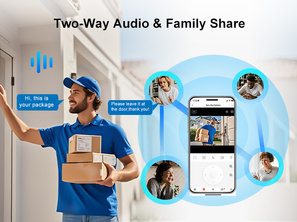 A Two-Way Street for Communication: Built-in microphones and speakers enable real-time, two-way audio. This allows you to not only hear the live, continuously recorded audio feed but also to speak through the camera directly from your smartphone at any moment—whether to greet a delivery person you see approaching, warn off an intruder, or talk to a family member.